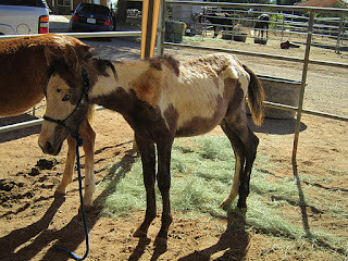 Upon arrival at So Cal Equine Hospital Ruby Rose was given a through exam, multiple tests and a treatment plan for her recovery. It took several months of Karen's tender loving care before Ruby Rose was well enough to make the trip from her ranch in So Cal, to the rescue in Snowflake. We were tickeled when she arrived in September where she was reunited with Techie and BamBam, the other two horses she had been with at the defunct rescue. |